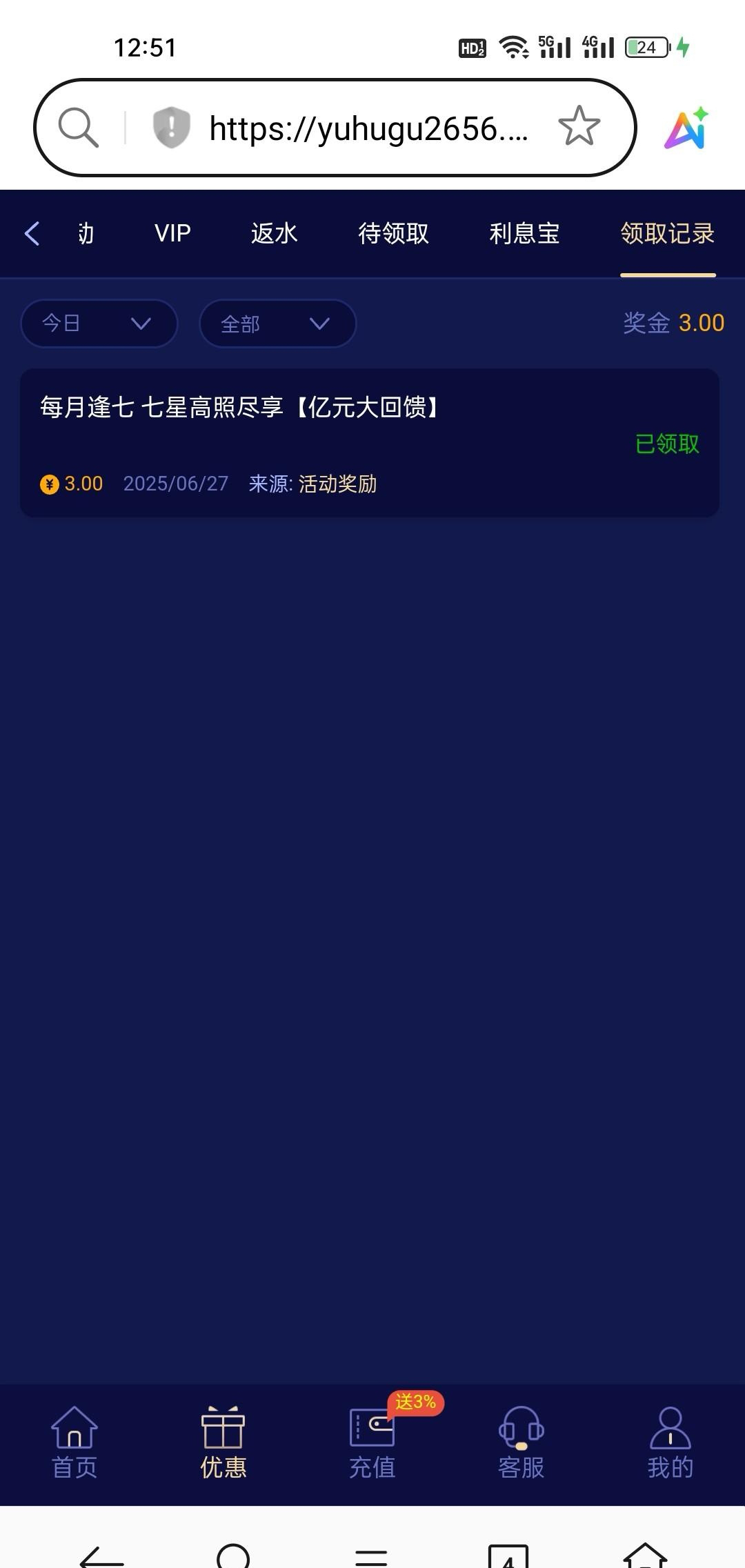 限定彩金返场3块 自己去试试看