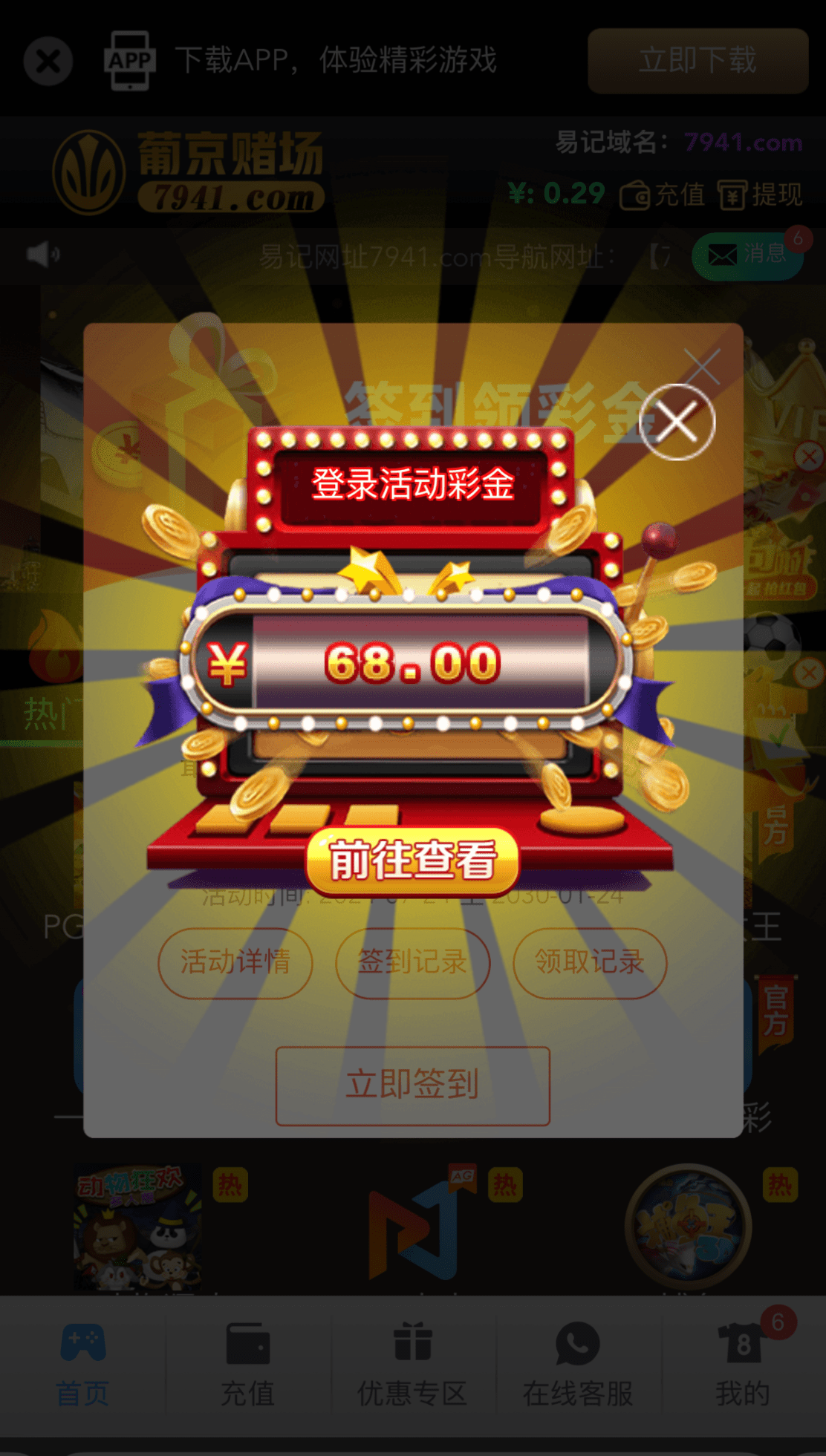 我送了68 以前充值过,不知道能不能到,不要充值就好了