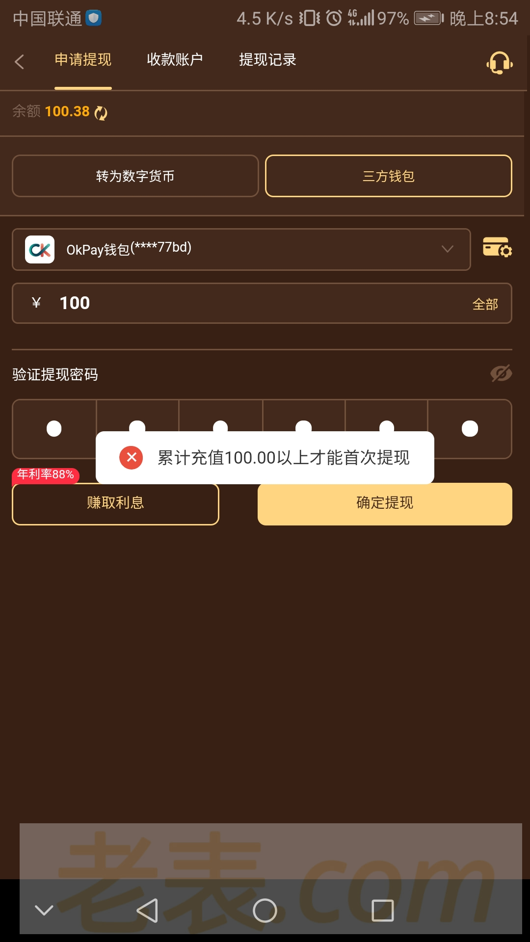 56v.com黑不黑,送了83,打了100要首冲100才给提现