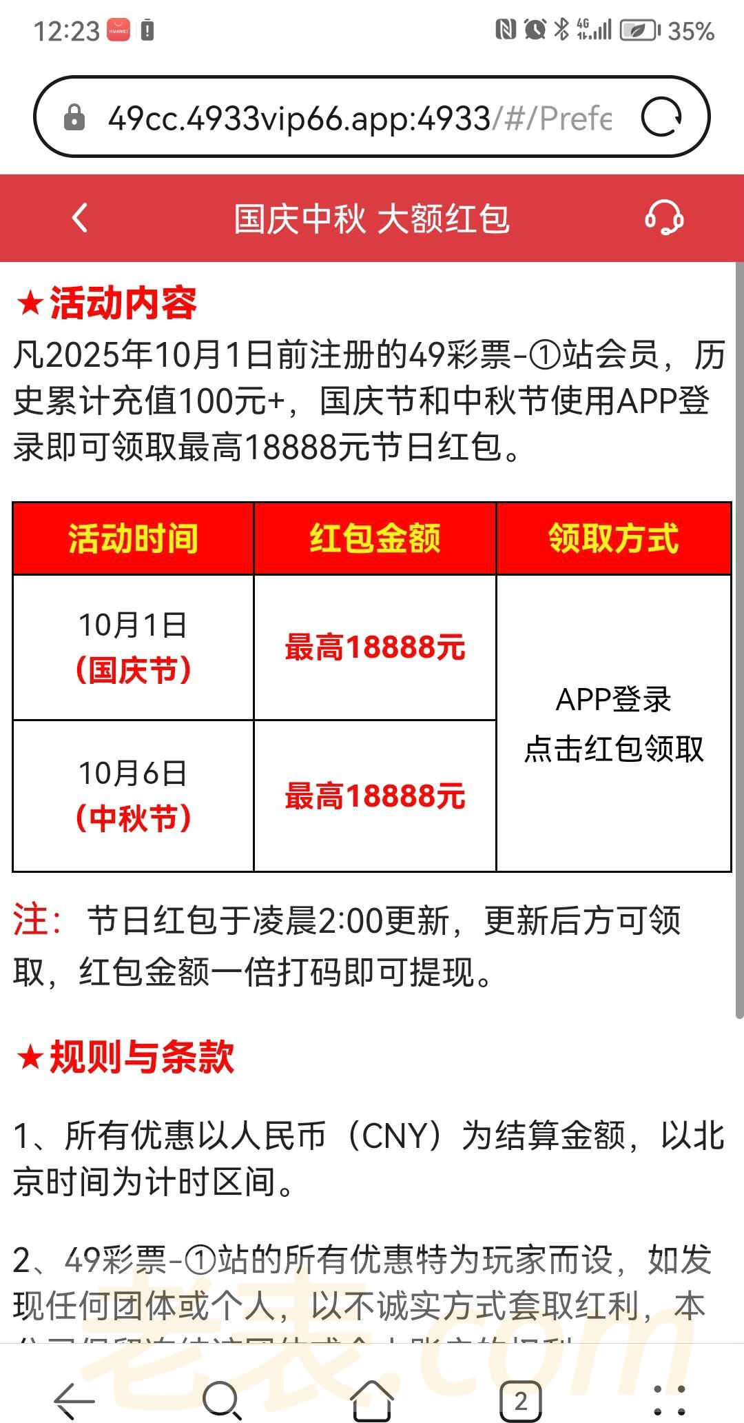49彩票有号历史充值过100的,凌晨2点去领红包,10月1号和6号都可以领一次