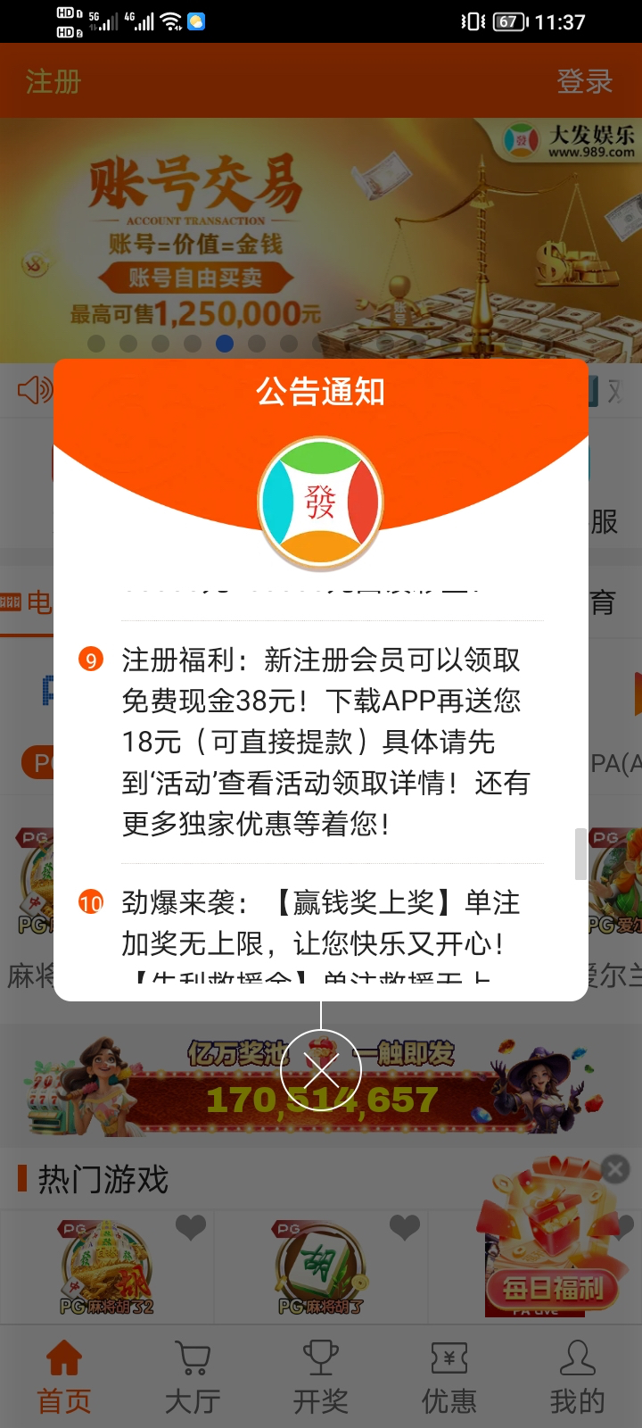 大发彩票新人注册送56 ,打380流水即可出款 我没打出来,不用充值